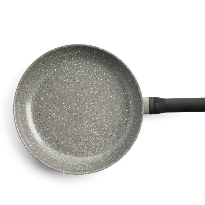 Met deze speciale BK serie bak je gezond op alle warmtebronnen. De hippe stonelook coating en een stevige kunststof greep maakt deze pannen een opvallende verschijning op elk fornuis. De hoogwaardige keramische non stick-coating (vrij van PFAS) kan tegen een stootje en is perfect voor het bakken of braden zonder of met weinig oliën of vetten. De ergonomische koudgreep zorgt voor een veilige grip onder alle omstandigheden. De pan is geschikt voor alle warmtebronnen, kan in de oven (tot 160 °C) en kan na gebruik in de vaatwasser.