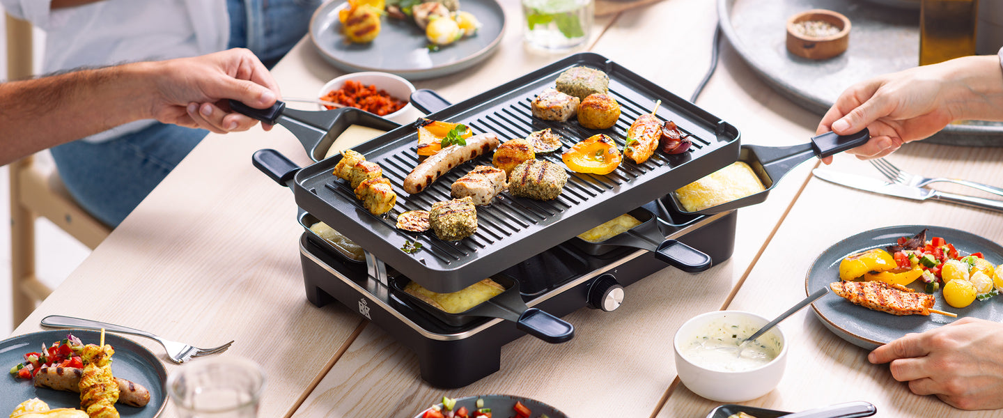 Rauwe dierlijke producten op tafel? Geef bacteriën geen kans! Vlees en vis mogen maximum 2 uur buiten de koelkast staan. De beste tip is dus om alle ingrediënten gekoeld te bewaren tot je de tafel dekt. Zorg altijd voor apart bestek bij de bordjes met rauwe producten. Met dit bestek leg je de rauwe stukjes vlees of vis op de plaat, zodat je met een andere spatel (of je eigen vork) de gebakken ingrediënten kunt opeten. Zo hou je gourmetten veilig!
