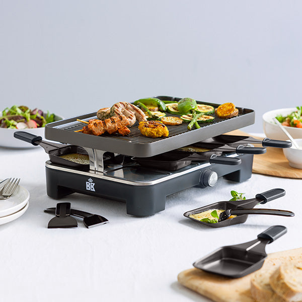 Heb je ondanks alles toch nog last van een sterke gourmetlucht? Wil je na het gourmetten niet nog dagen in die geur zitten, zorg dan dat je direct na het eten (en vóór het natafelen) het gourmetstel schoonwrijft en de losse onderdelen meteen afwast. Met het gourmetstel van BK gaat de schoonmaak extra vlot: de losse onderdelen van het gourmetstel - de bakplaat, 8 pannetjes en spatels – kunnen zó in de vaatwasser!
