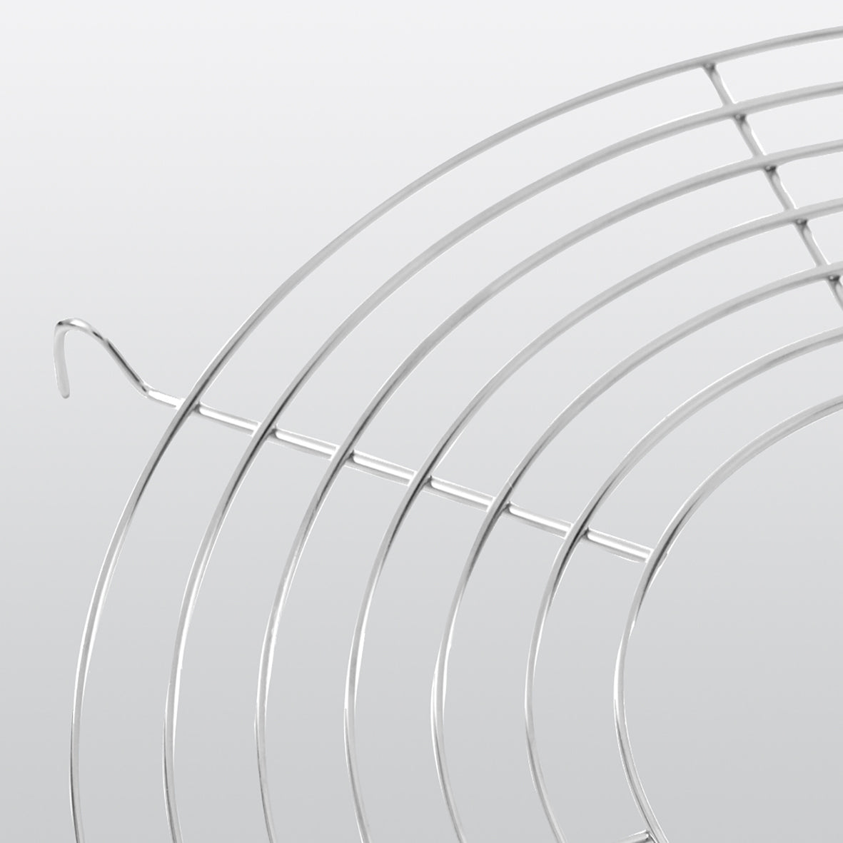 Op dit speciale rooster, in de vorm van een halve maan, kun je bijvoorbeeld een grote moot zalm of een stuk vlees garen of voedsel uit laten lekken in de Chinese wok. Door de grootte kun je ook meerdere stukken vlees of groente hierop leggen. Door de haken wordt het rooster stevig bevestigd op de wok en kan eronder ook een gerecht bereid worden.