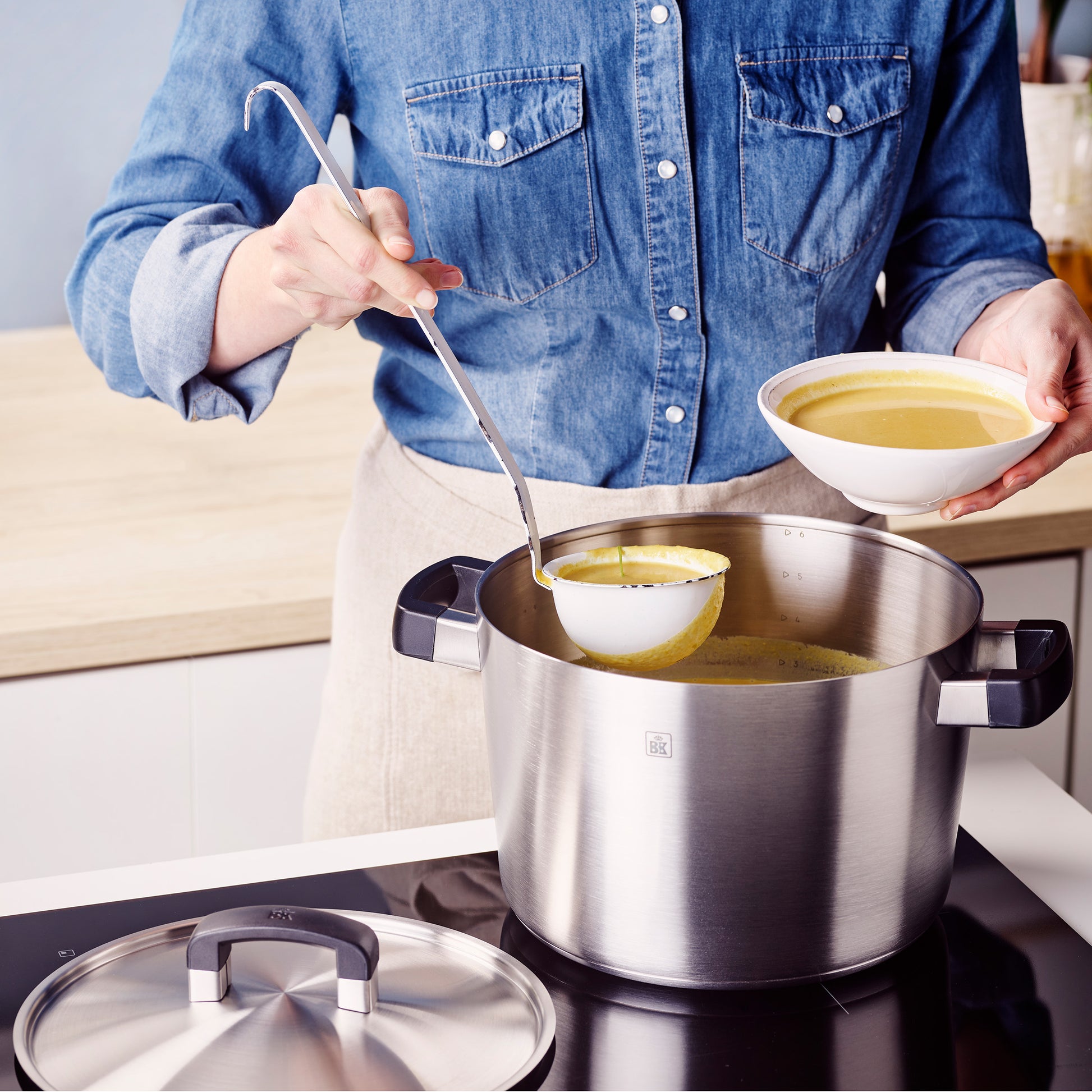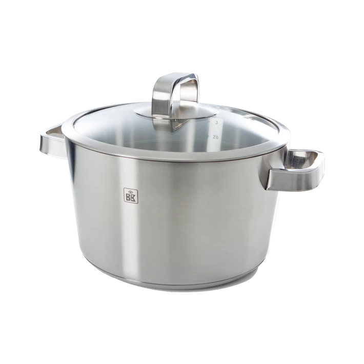 De BK Conical Cool pannenserie combineert trendy design met gebruiksgemak. De geborstelde roestvrij edelstalen panbody loopt conisch uit naar boven toe en wordt bekroond door een paar stevige koudgrepen die zorgen dat de pan altijd veilig te hanteren is. De BK Conical Cool is geschikt voor alle warmtebronnen, inclusief de oven tot 230 ºC.