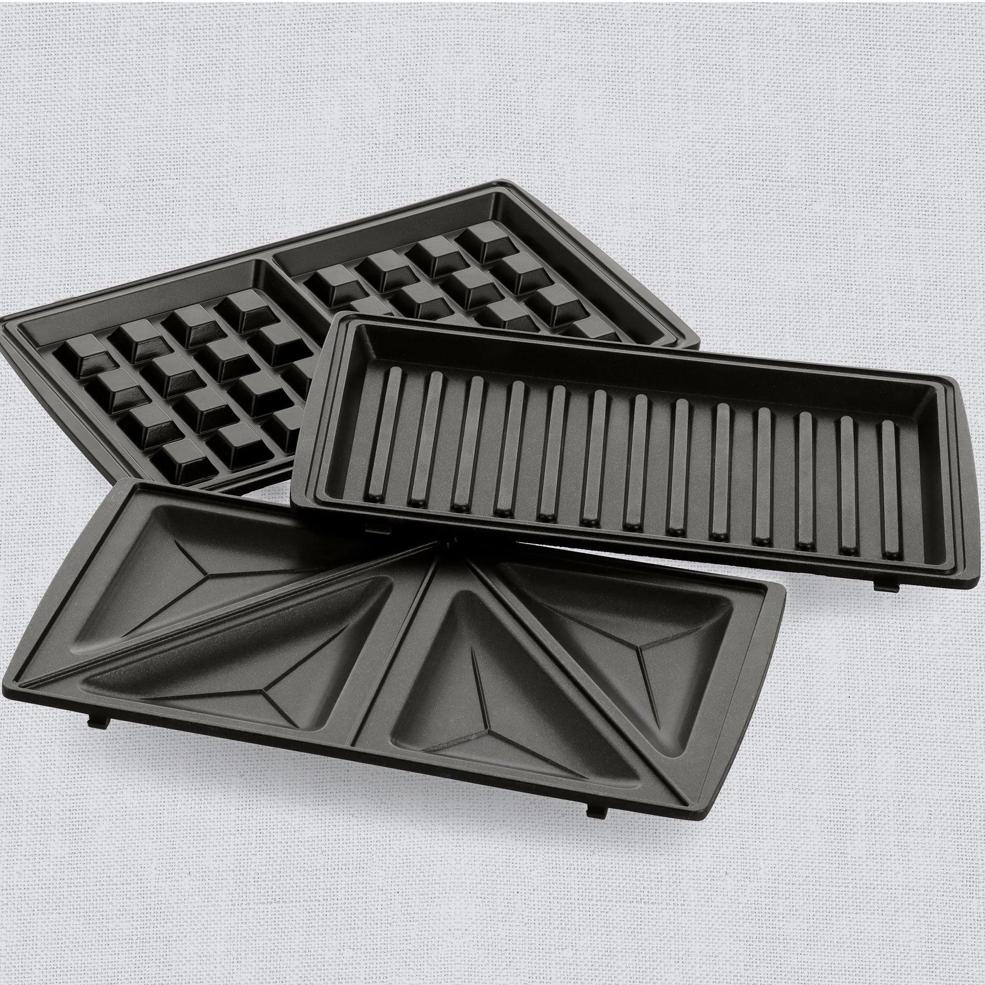 - 3-in-1 grill inclusief 3 verwisselbare platen: panini’s, tosti’s en wafels