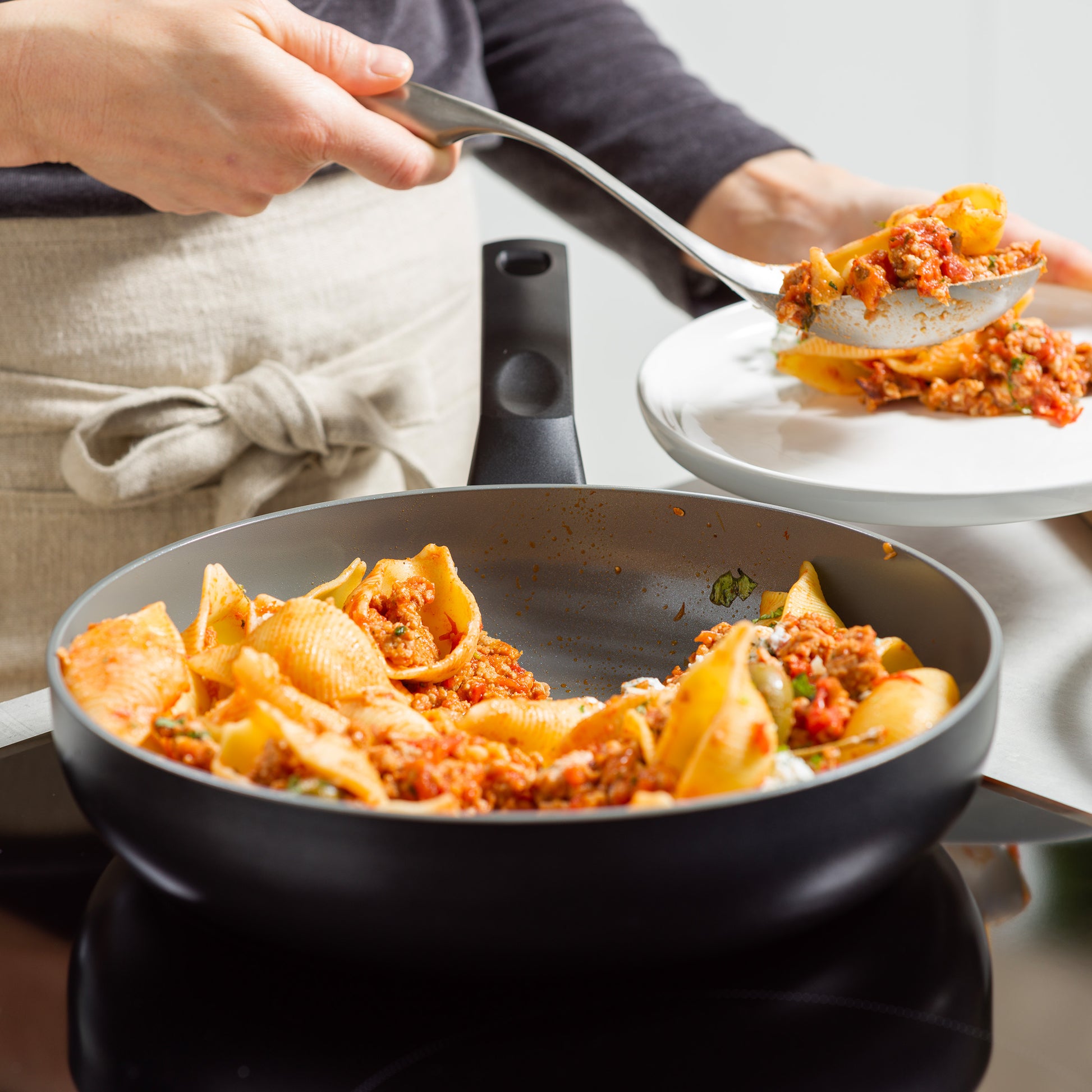 De BK Easy Basic Ceramic laat zien dat gemak en een gezonde levensstijl prima samen kunnen gaan. Dankzij de keramische, milieuvriendelijke coating (vrij van PFAS) kun je ingrediënten korter en heter bakken, met behoud van vitaminen. De aluminium pannen warmen snel op en hebben een perfecte warmteverdeling, waardoor je minder energie verbruikt.