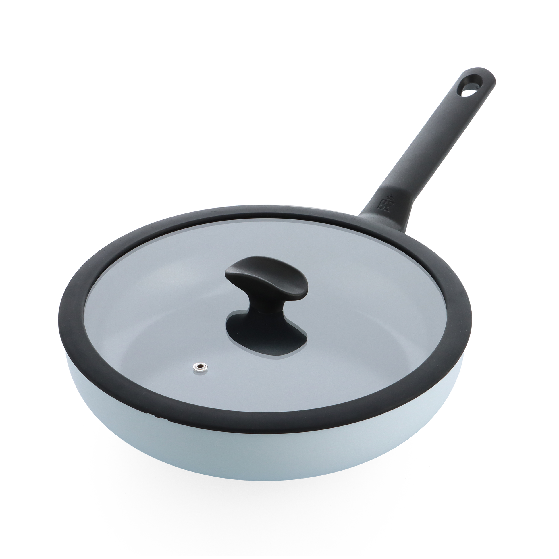 De pannen uit deze serie zijn gemaakt van stevig aluminium en hebben een PFAS-vrije keramische antiaanbaklaag. Koelblijvende grepen en glazen deksels met een isolerende siliconen rand zorgen voor extra gebruiksgemak.