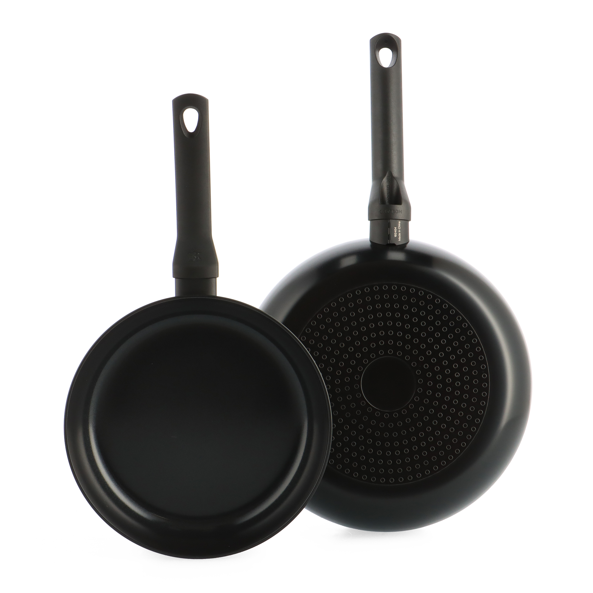 De pannen uit deze serie zijn gemaakt van stevig aluminium en hebben een PFAS-vrije keramische antiaanbaklaag. Koelblijvende grepen met een isolerende siliconen rand zorgen voor extra gebruiksgemak.
