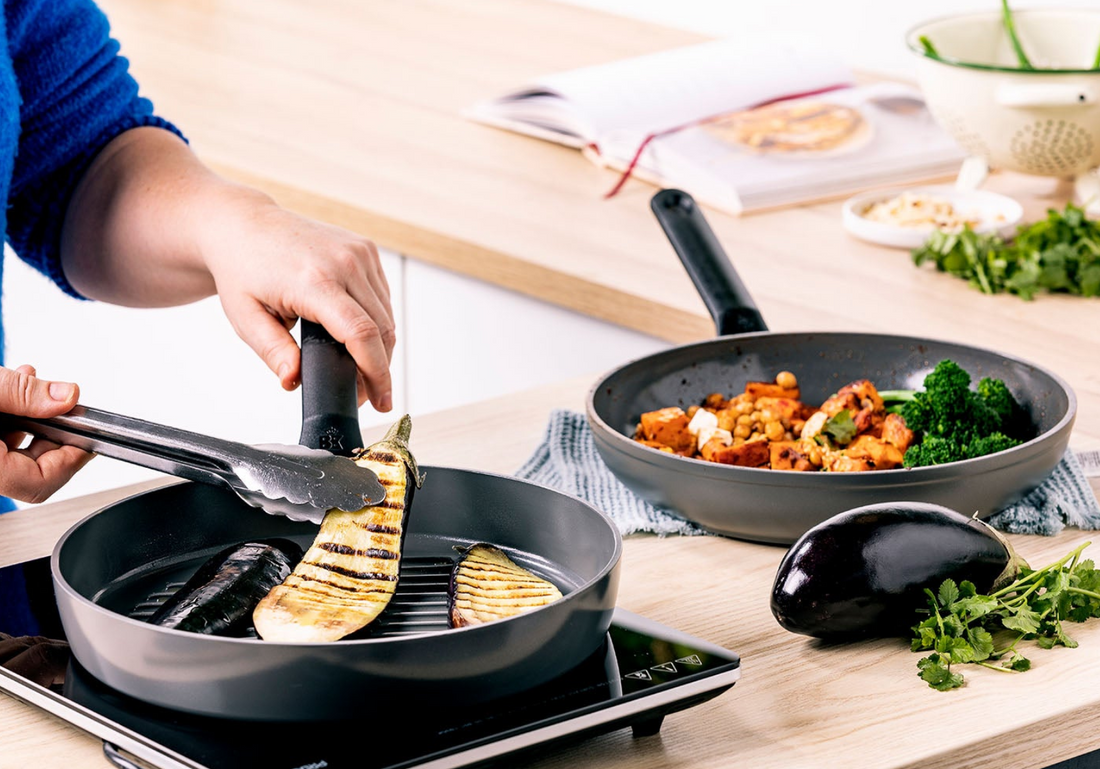 De pannen uit deze serie zijn gemaakt van stevig aluminium en hebben een PFAS-vrije keramische antiaanbaklaag. Koelblijvende grepen en glazen deksels met een isolerende siliconen rand zorgen voor extra gebruiksgemak.