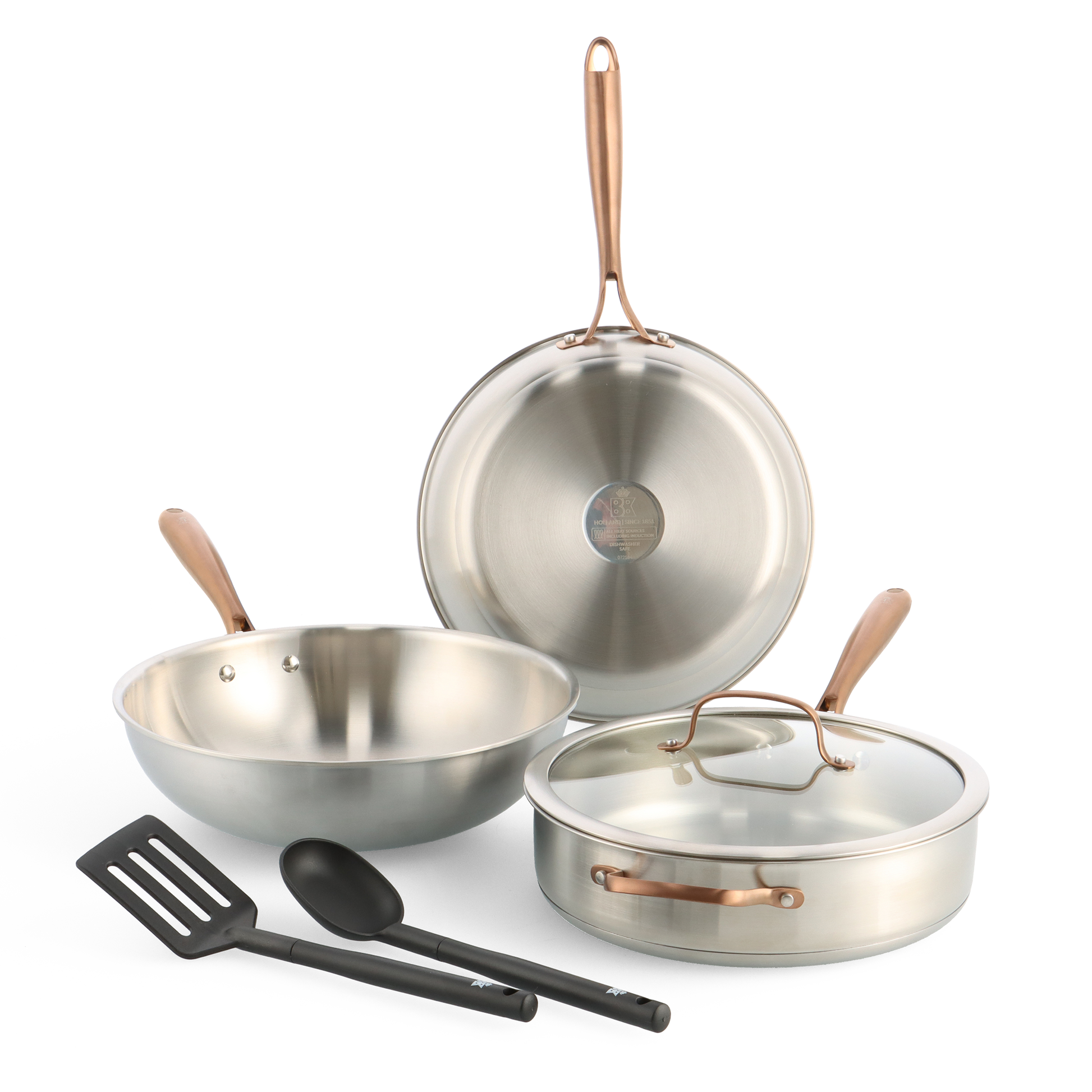 De reeks is geschikt voor elk type fornuis, inclusief inductie en kan na gebruik gewoon in de vaatwasser. En wat dacht je van het knappe design? De opvallende handgrepen met roségouden finish maken deze collectie écht uniek.