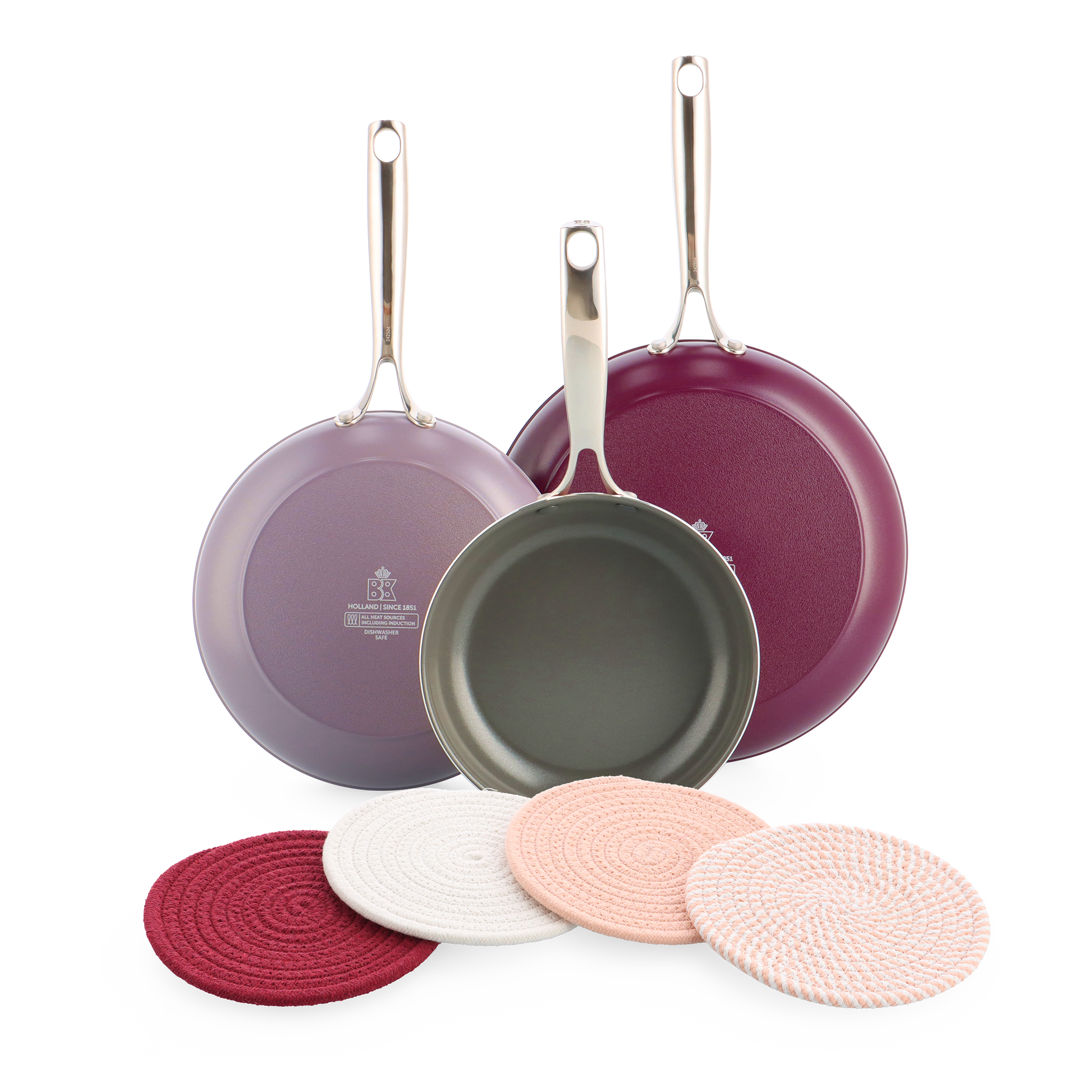 Paars staat voor creatieve elegantie, en dat is precies wat de BK Sky Violet 3-delige set in aubergine, paars en roze naar je fornuis brengt. Dankzij de PFAS-vrije Thermolon™ keramische antiaanbaklaag en Magneto™ inductietechnologie kook je gezond én met topprestaties. De stijlvolle roestvrijstalen handgrepen maken het design compleet.