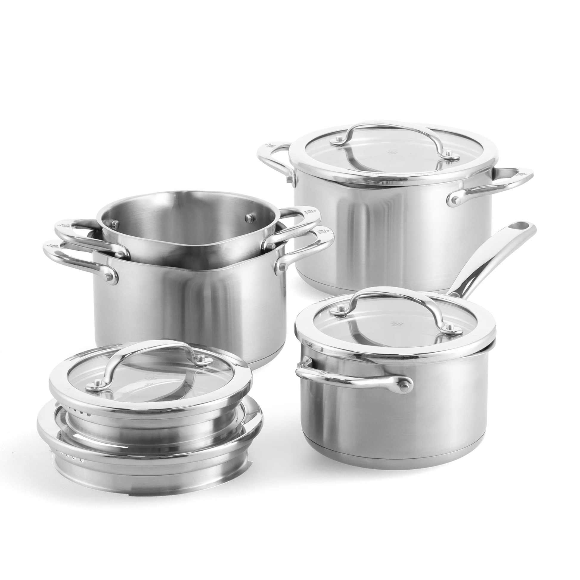 Deze pannen zijn vervaardigd uit roestvrij staal en beschikken over een uniek afgietsysteem: je vergrendelt de deksel in één handomdraai in de rand van de pan, waardoor je veilig kunt afgieten.