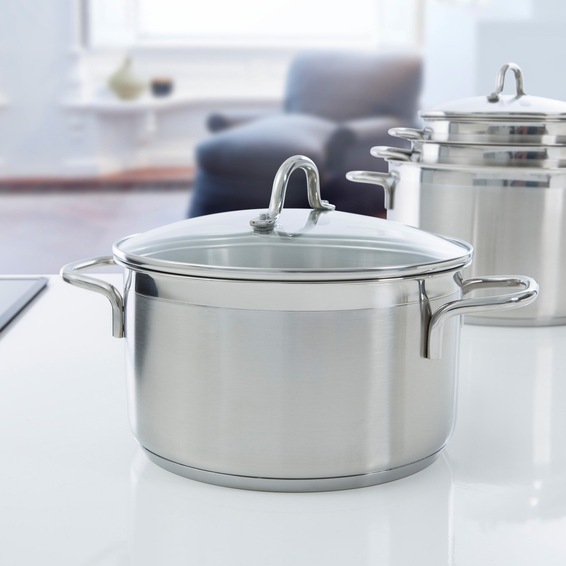 De BK Vision verenigt een stijlvol eigentijds design met groot gebruiksgemak. De gesatineerde roestvrij edelstalen body loopt loodrecht omhoog en mondt uit in een strakke hoogglans rand. De mooi afgeronde grepen en stelen zijn vuurvast, liggen prettig in de hand en zorgen voor een veilige grip tijdens het kookproces. De deksels zijn vervaardigd uit gehard glas.